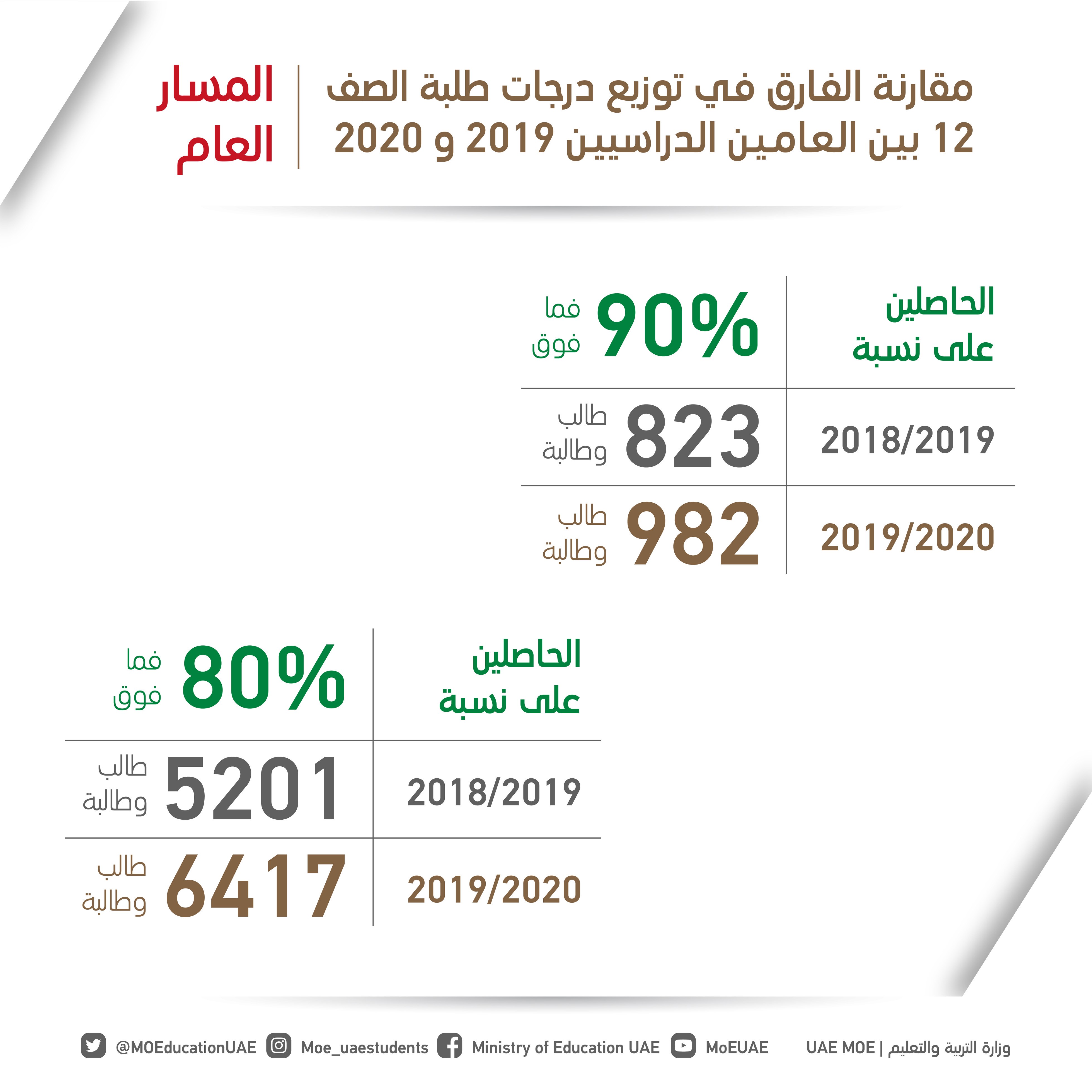 للعام الدراسي 2019-2020 قياسا بالعام الدراسي الذي سبقه 2018-2019 .